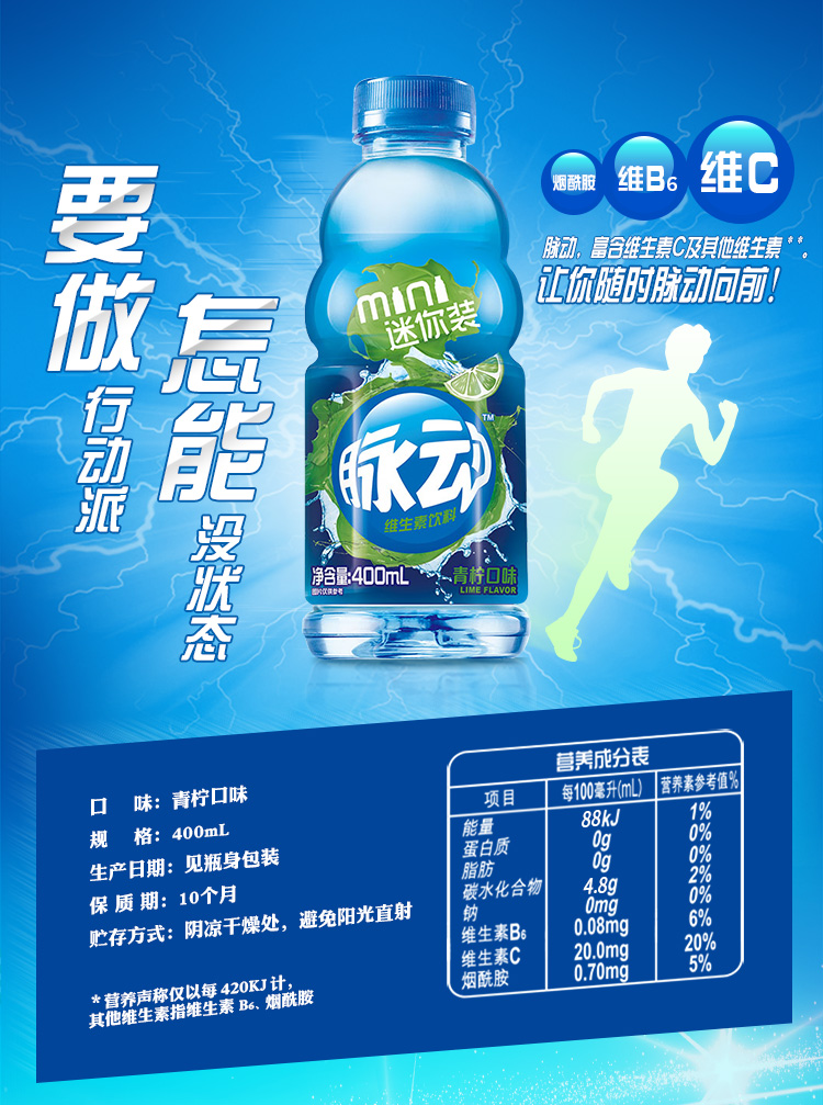 Pulse (Mizone) lime taste vitamin beverage 400ml * 15 bottles packed in a whole box