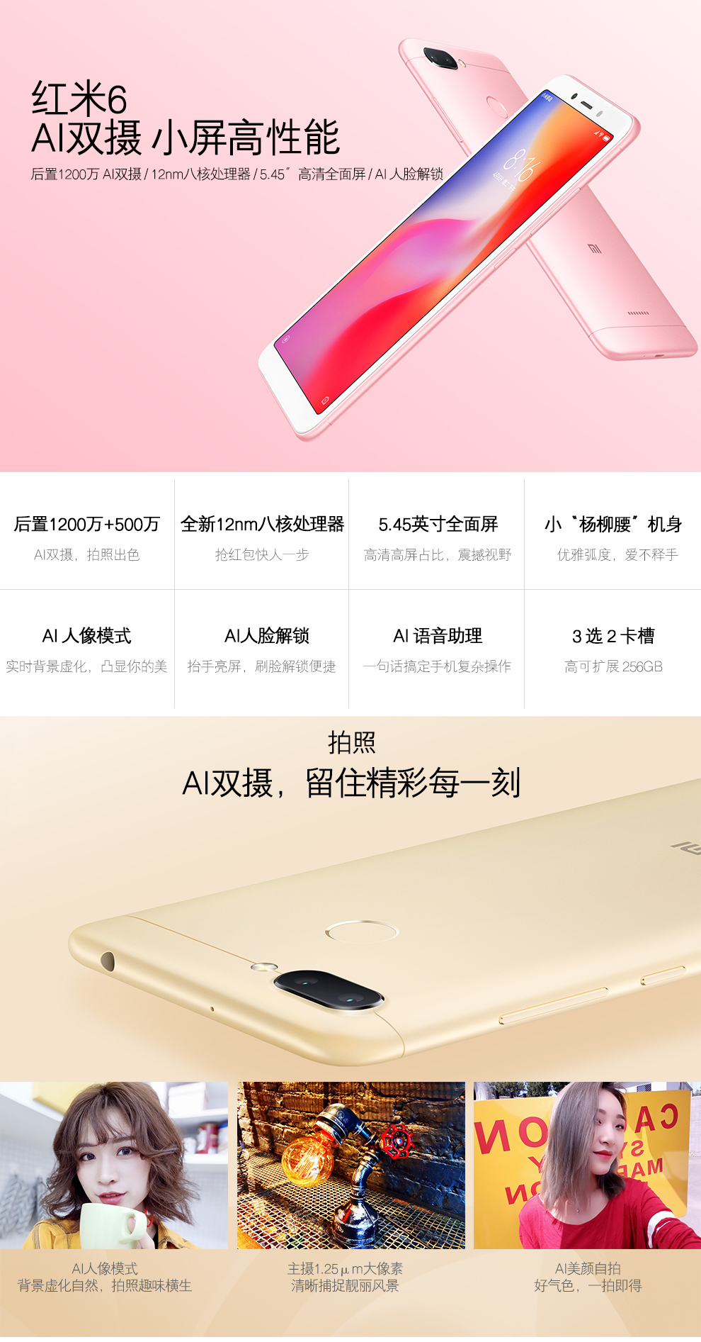 Xiaomi (MI) Hongmi 6 student mobile phone Liusha gold 4G + 64g all China Netcom